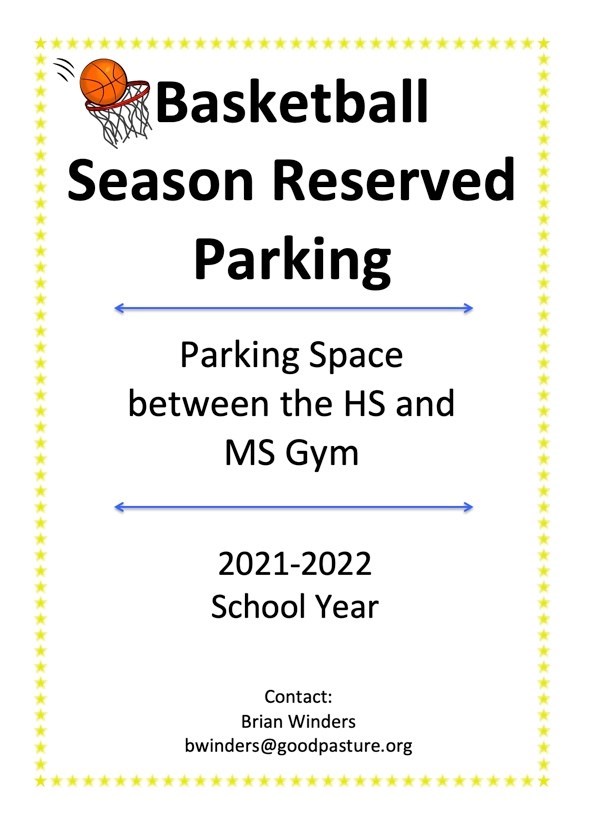 Reserved Parking Space between the Middle and High School Gym for all Middle School and High School basketball games.