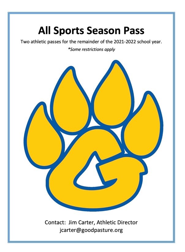Two All Sports Season Passes for the 2021-2022 school year. These passes are valid at all home games for both middle school and high school sporting events.