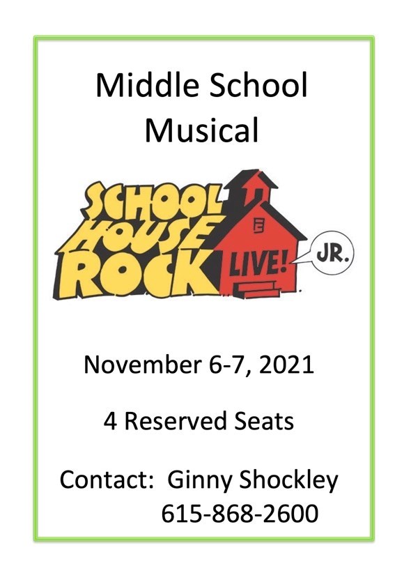 4 Reserved Seats to the Middle School performance of School House Rock Live! . The show dates are November 6 & 7., so you are able to choose which date you would like.