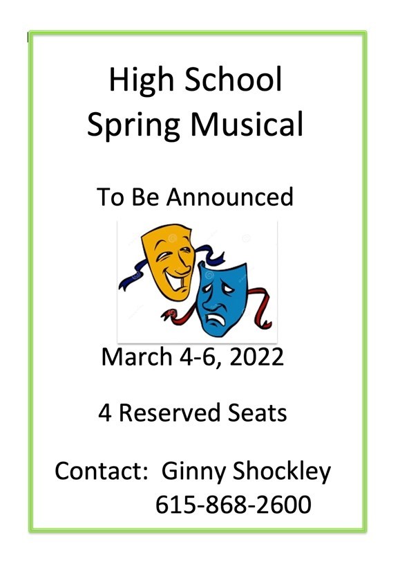 4 Reserved Seats to the HS Spring Musical on March 4-6, 2022. You may choose which date you would like to attend.