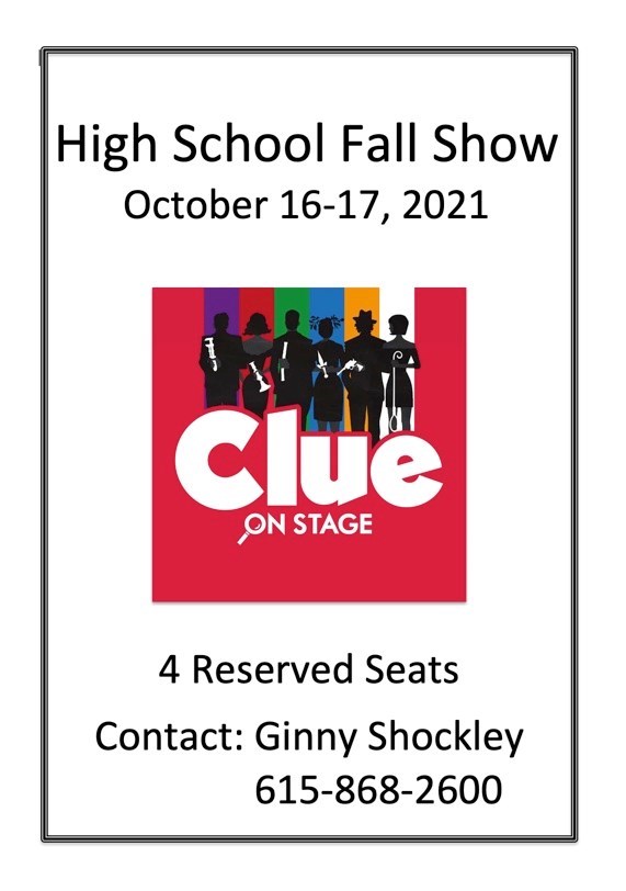 4 Reserved Seats to the High School Fall Musical, Clue. You may choose which date you attend between October 16th and 17th.