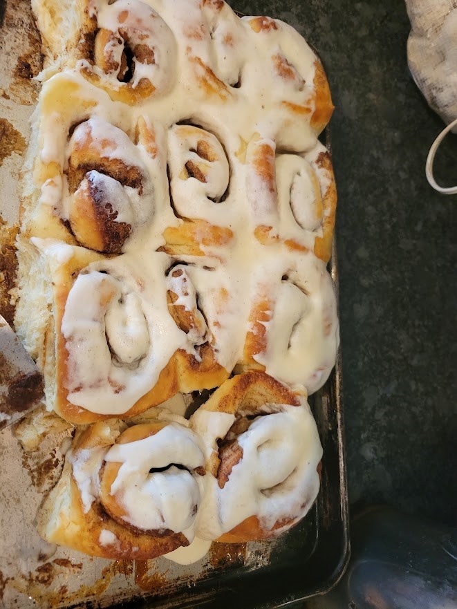 6-8 Homemade Cinnamon Rolls frosted with a cream cheese frosting. Made fresh. Item is only available to be picked up at the SEBACS show in May during the conference (05/16/25 or 05/17/25) 720 FFA Camp Rd Covington, GA