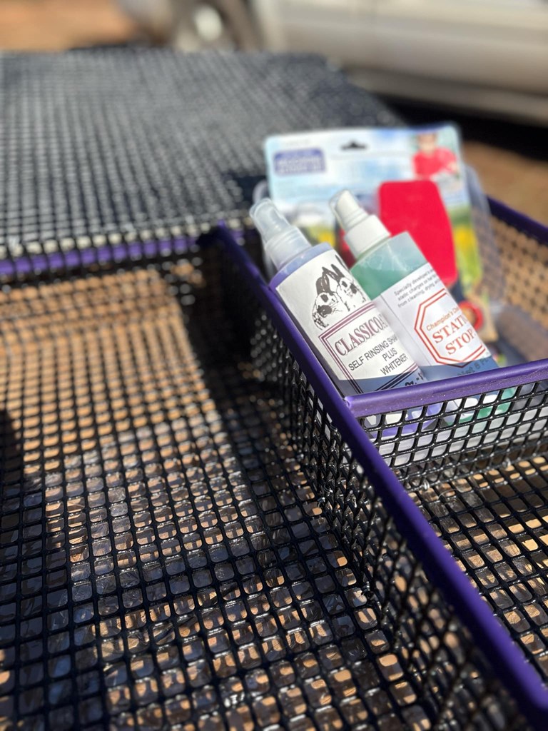 Up for bid: a premium grooming stand and kit, handcrafted by Trammell Trails Treasures! This complete set is designed to make grooming your animals a breeze, featuring a sturdy, adjustable grooming stand and all the essential tools you need for a polished, professional finish. Whether you're preparing for a show or just maintaining your animal's coat, this kit has everything you need. Don't miss out on this must-have grooming set! We can arrange show delivery or local pick up with the winning bidder!