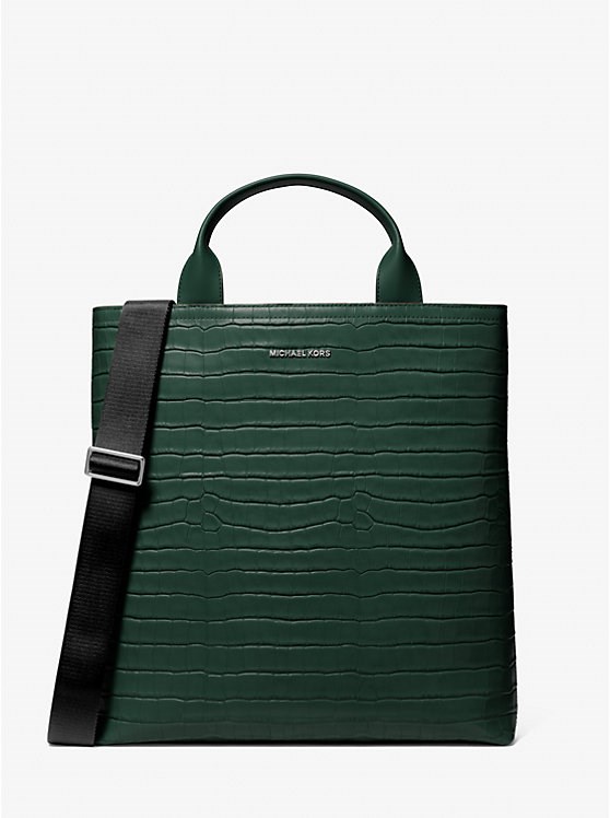 Designed in a lightly structured silhouette, the Hudson tote bag is crafted from crocodile embossed leather with a gold logo. Its spacious interior is lined and equipped to hold your everyday essentials, including a laptop or extra pair of shoes. Carry it by the top handles, or attach the crossbody strap to go hands-free. The tote is accompanied by a scarf from the exclusive Masters shop. • Tote bag • Embossed leather • 100% leather • Trim: 100% polyurethane • Gunmetal hardware • 17.2”W X 14.2”H X 6.6”D • Interior details: back slip pocket, front slip pocket • Lining: 100% polyester • Snap fastening