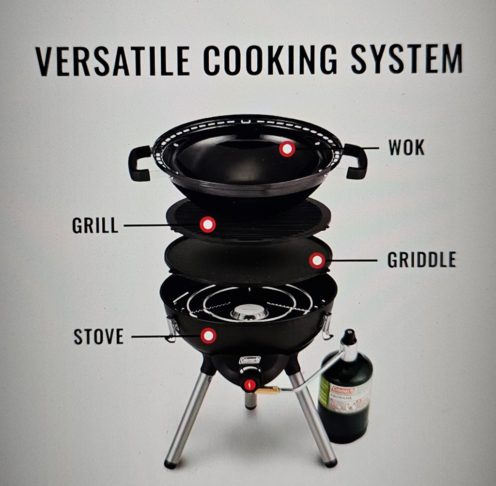 This small but mighty Coleman grill is perfect for camping or a picnic. It's so easy to get cooking with the push-button lighting. The 100sq inch surface and 7000 BTUs can have you cooking for four in no time. The cooking surfaces include a grill, a griddle and even a wok. Two 16.4-oz propane cylinders are included. Removable legs and inserts fit inside to make storage a breeze. Your winning bid will help WHAM community Art Center continue to bring art to the west valley.