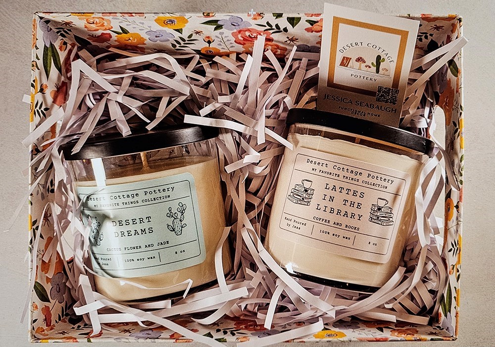 These delicious scented candles are hand poured, made up of 100% soy and deliciously scented. From the "My Favorite Things" collection you can enjoy this long lasting "Desert Dreams" candle, which gives cactus flower and jade fragrance notes for many hours. Also for your calm atmosphere, the "Latte in the Library" scent from this collection, brings coffee and books to mind while you relax. This is an added plus to your mental self care and well being.