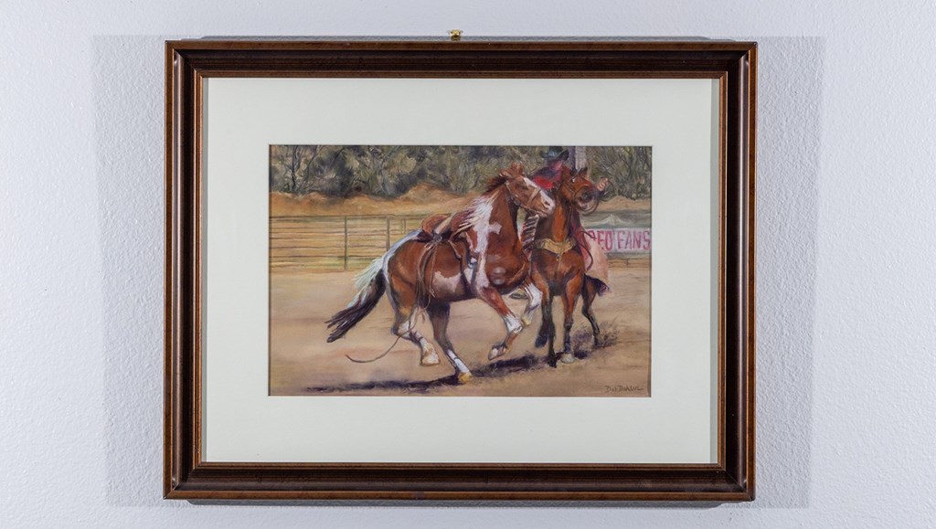Talented Deb Dahlin, has captured the action and excitement of chasing down a runaway bronc at the rodeo. The spirit of the cowboy and the American west lives in this beautiful rendering. Nicely matted and framed, this 20 x 24 inch piece is looking for place to tell its story. Your winning bid will help WHAM community Art Center continue to bring art to the west valley.