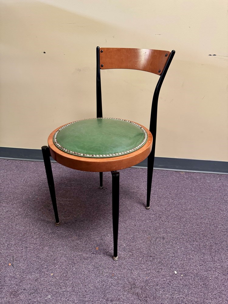 31" tall seat back, 19" tall seat, 17" round seat Used. Chair condition varies.