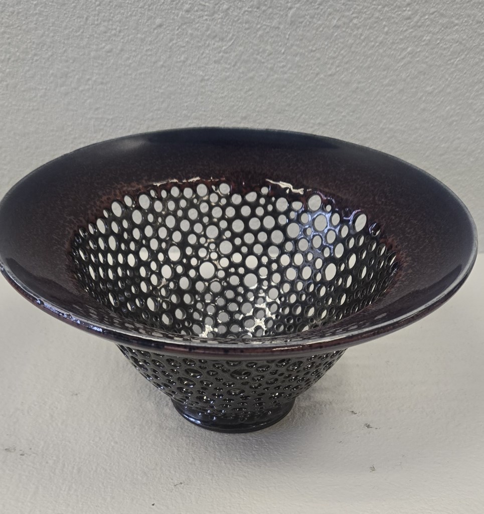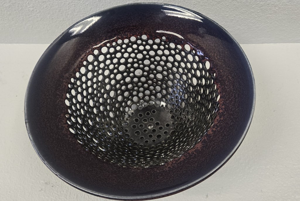 Geologist turned Master Potter, Mike "Doc" Farabee, creates these beautiful ceramic colanders which he calls "Holley Bowls" and uses very unique color glazes on them. The creativity and workmanship are outstanding. Decorative as well as useful, they look very nice displayed on kitchen counters. Your winning bid will help WHAM art center continue to bring art to the west valley.