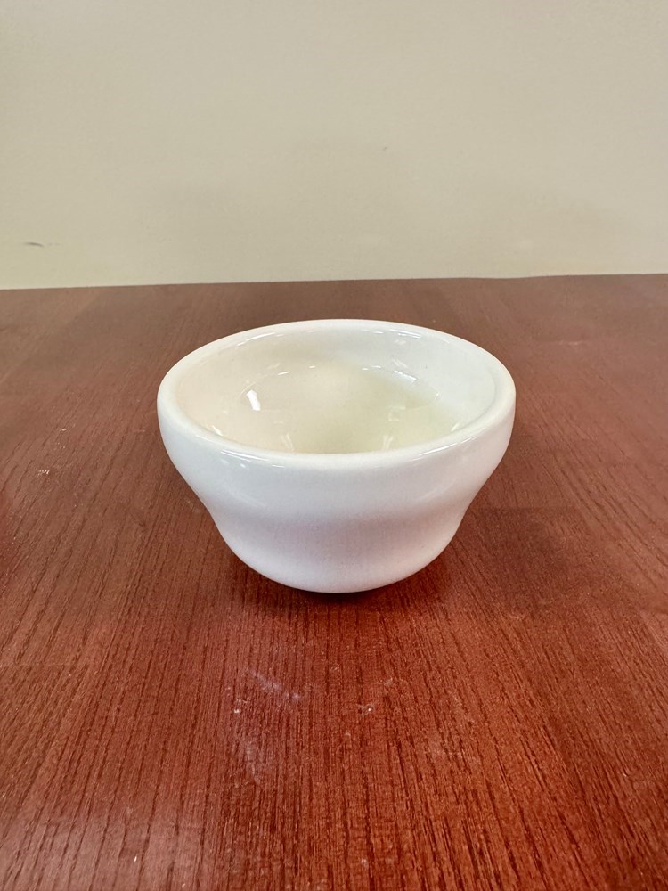 7 1/4 oz. 2.25" tall, 3.75" wide across top, 2" wide base. Used. Set 7 of 11.