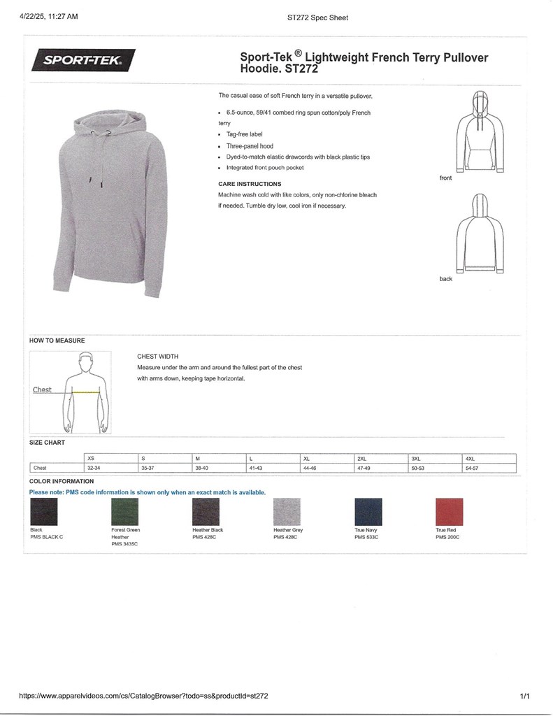 Sport-Tek lightweight soft French terry hoodie. Choose your size, choose your color and Jack will get your choice ordered for you.