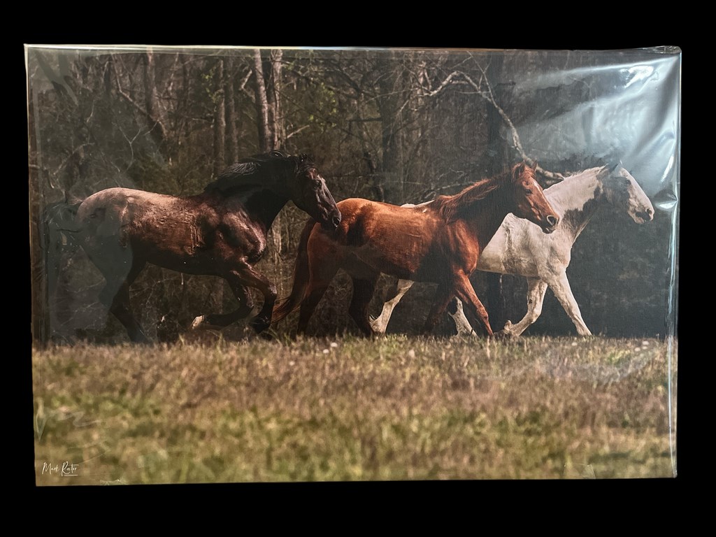 This basket contains: 1 - “Mane Parade” 20”x30” Professional Canvas by Mark Rector 3 - 5”x7” (professionally matted to 8”x10”) Photos of Kentucky Horses by Mark Rector