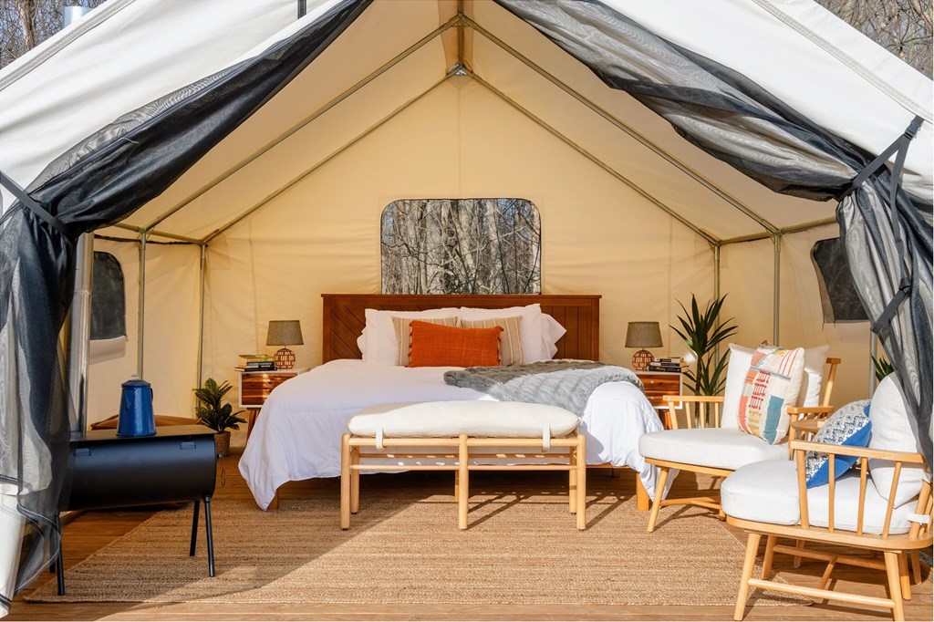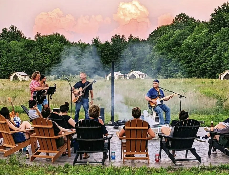 "We love this place! We stayed with them in the opening week and we came back this year. Staff and owners are super friendly. The tents are incredible. The common areas are great and parking lot is only a short walk away from the tents. Staff assist guests with golf carts to take your things to the tent. The place offer clean and spacious individual restrictions and bathrooms. Breakfast is good and the South Haven downtown and beach are a short drive away. Dogs are welcome! Perfect for a group of family or friends to experience all the activities, especially the live music in the evenings at the common bonfire. A great way to end the nights!" - Cecilia G.