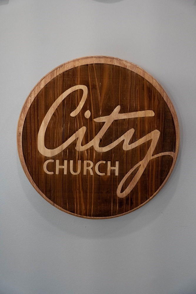 Handcrafted Wooden Round Sign – City Church Logo