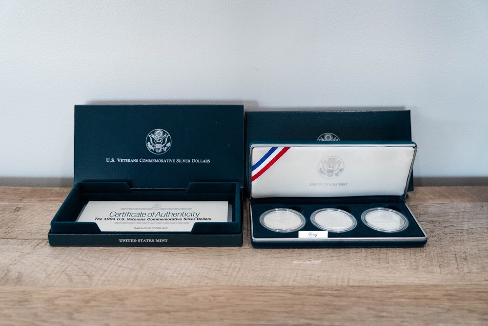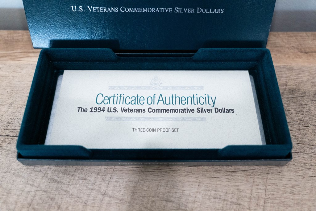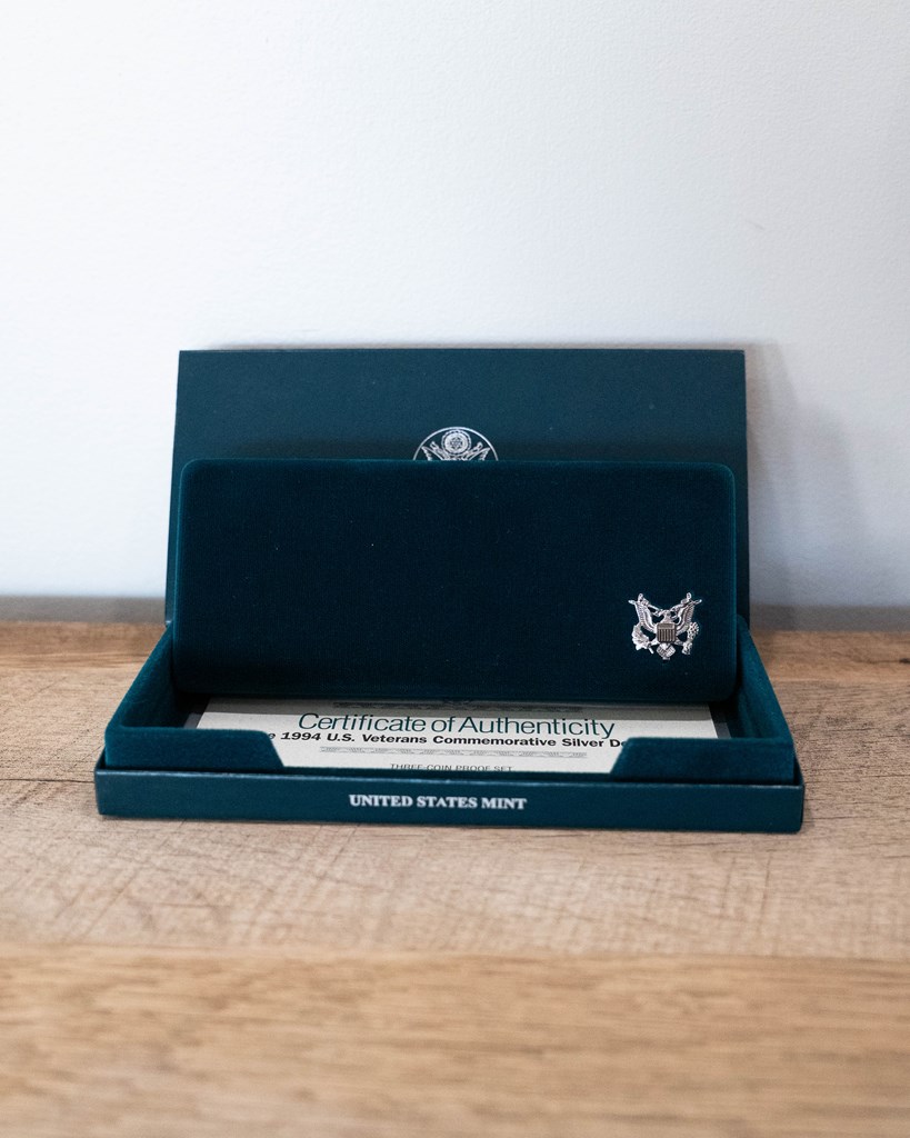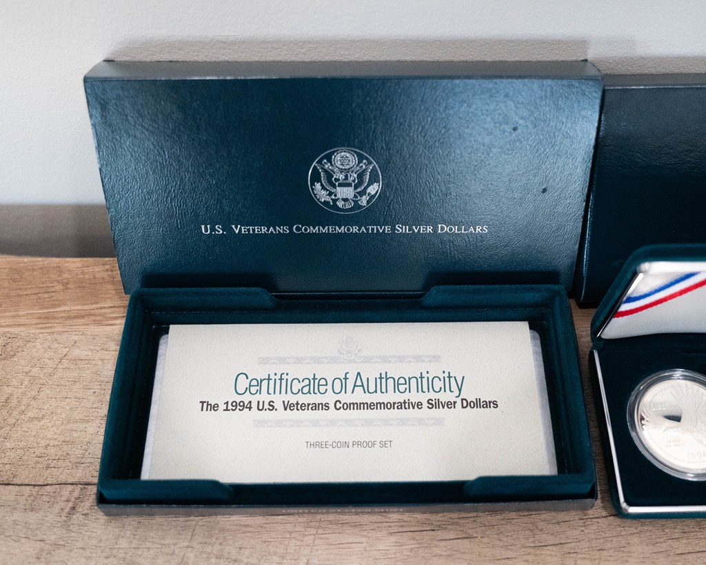 1994 U.S. Veterans Commemorative Silver Dollar Set (Proof & Uncirculated) with Certificate of Authen